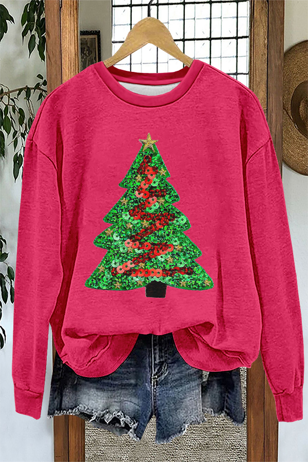 Shiny Christmas Tree Print Sweatshirt