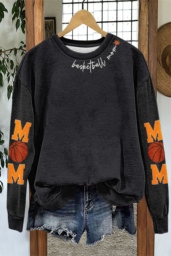Cozy Gameday Basketball Mom Print Sweatshirt