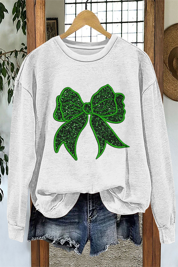 Shiny St. Patrick Shamrock Bow Print Sweatshirt