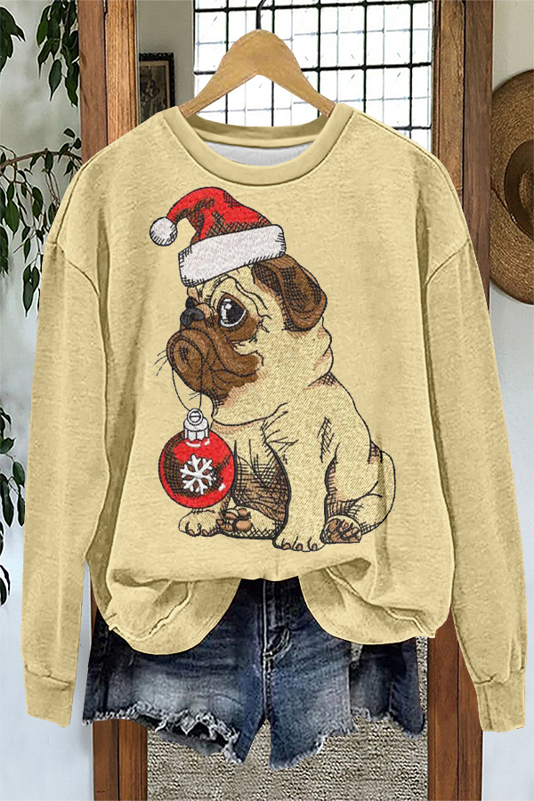 Cute Christmas Bulldog Print Sweatshirt