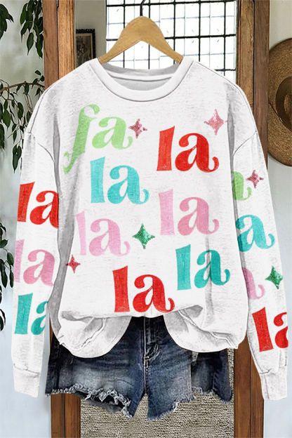 Shiny Christmas Fa La La Print Sweatshirt