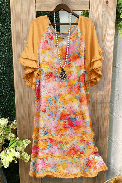 Stay on trend this season in our new chic, round neck dress. We especially love the floral print fabric and think this piece will be a new favorite in your closet!