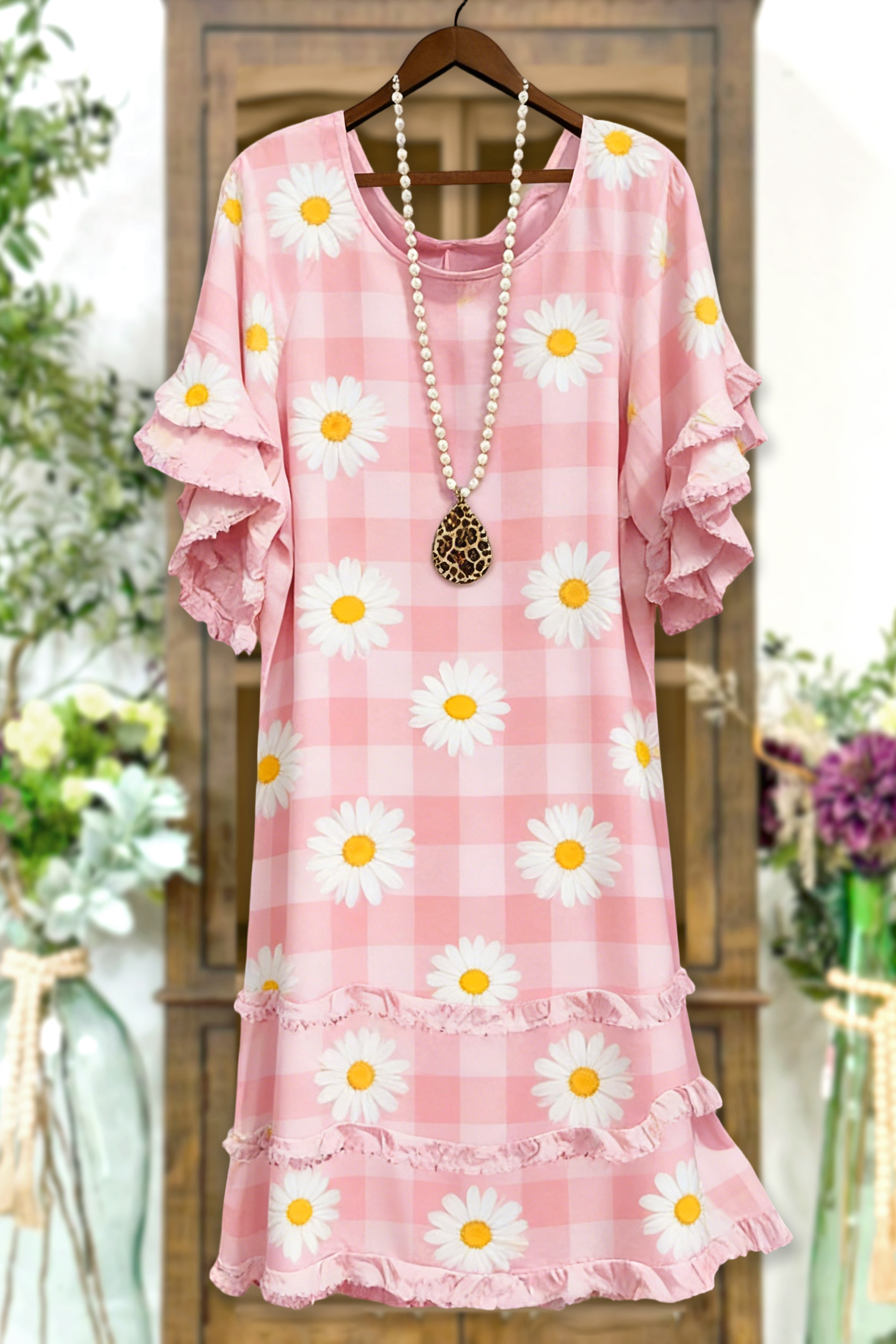 Floral Plaid Print Ruffle Dress