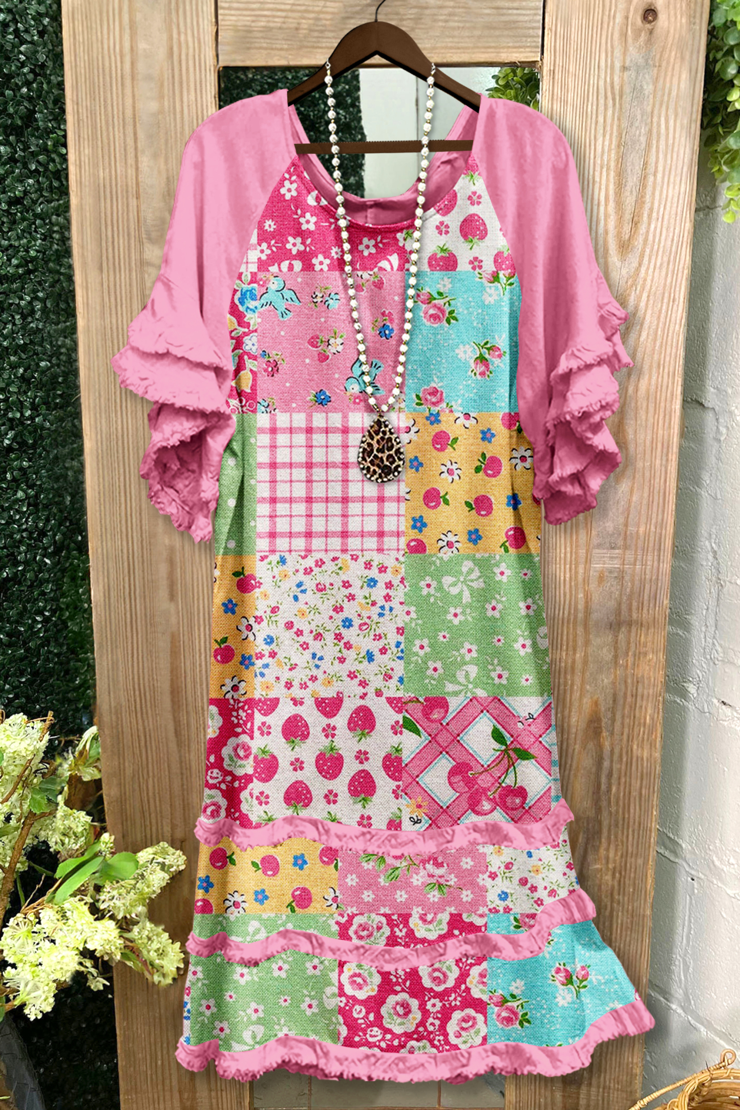 Sweet Floral Print Ruffled Raglan Sleeve Dress