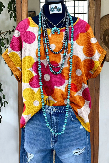 Sweet Floral Washed Dolman Sleeve T-shirt