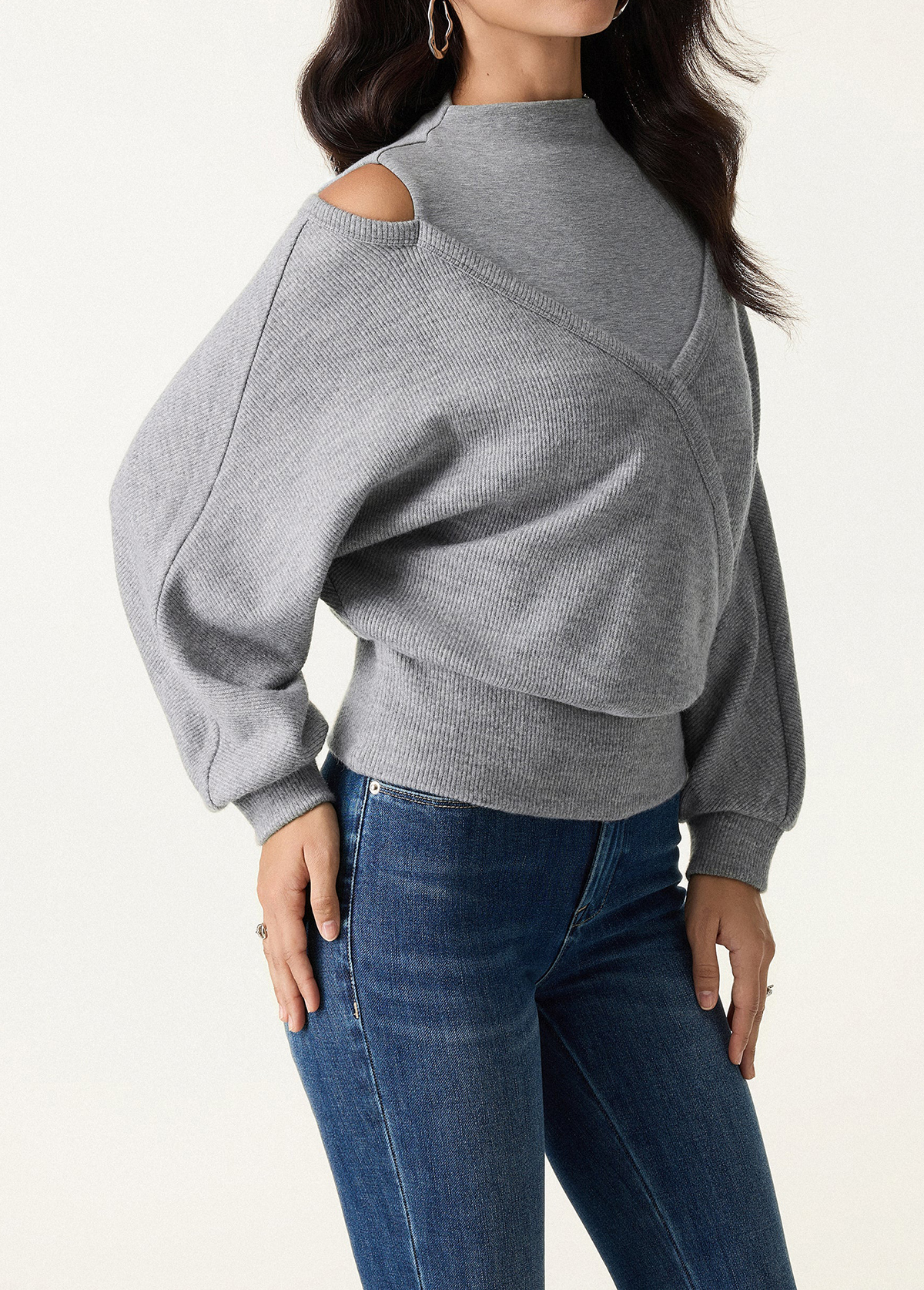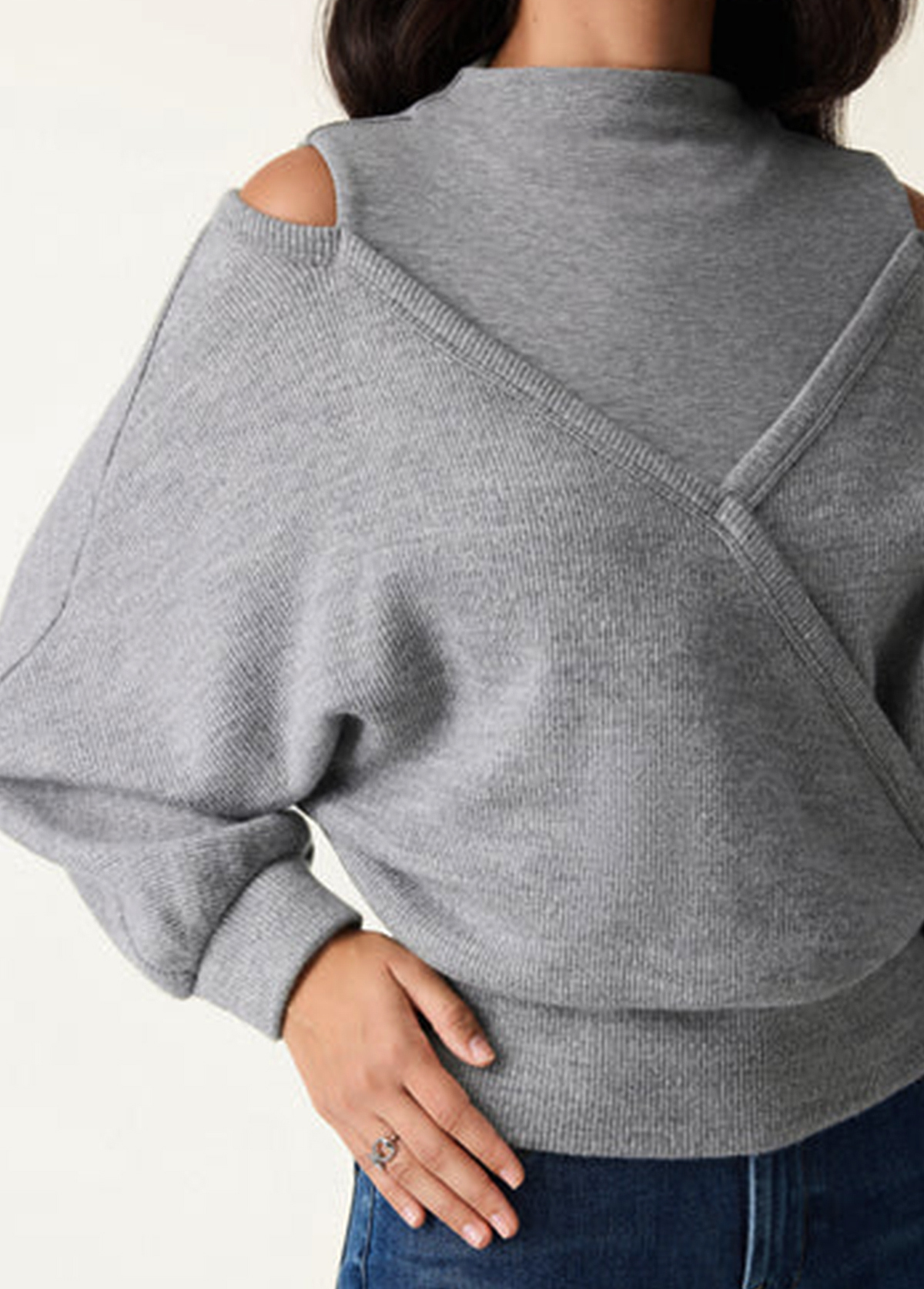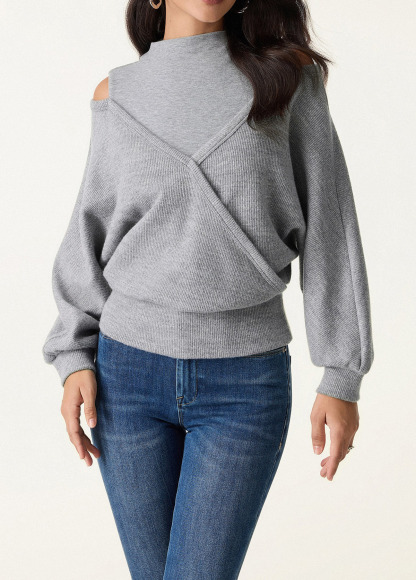 Design Features:You’ll love this unique knit top that combines a sleek mockneck with an artful surplice front and cutout shoulder design. The banded hem and cuffs give it a polished finish, while removable bra pads provide comfort and support.