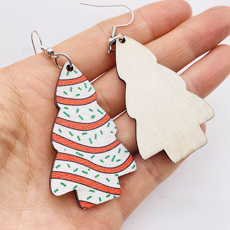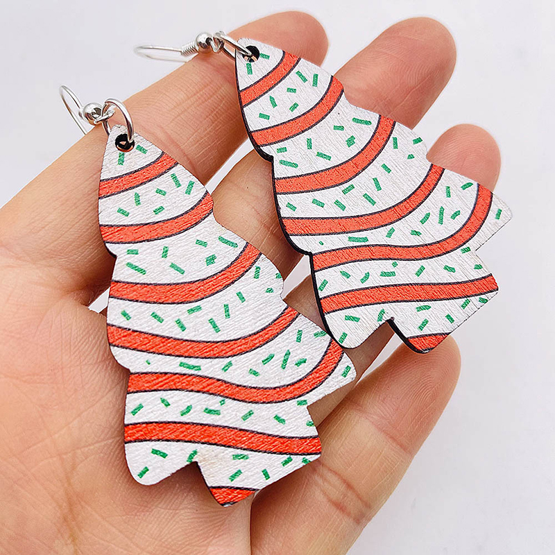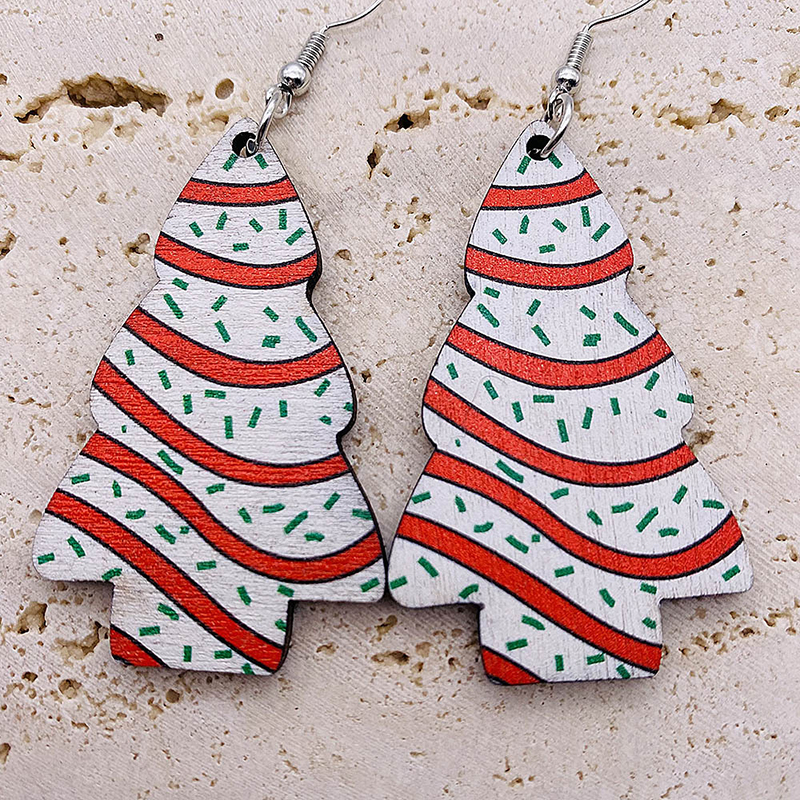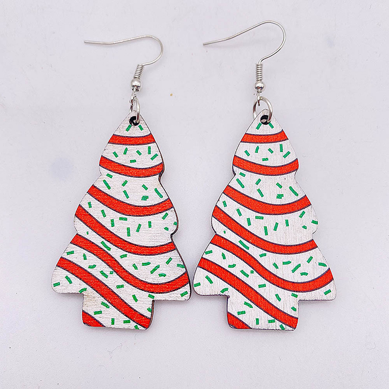 Christmas Tree Print Wooden Earrings
