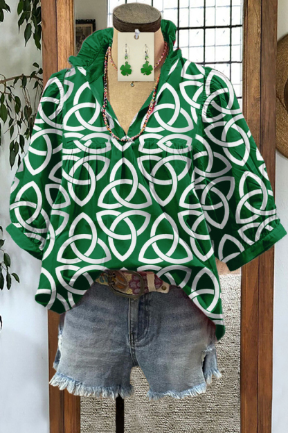 Celtic Knot Shamrock St. Patrick's Day Print Blouse