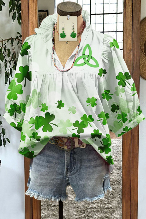Fresh Celtic Knot Shamrock St. Patrick's Day Print Blouse