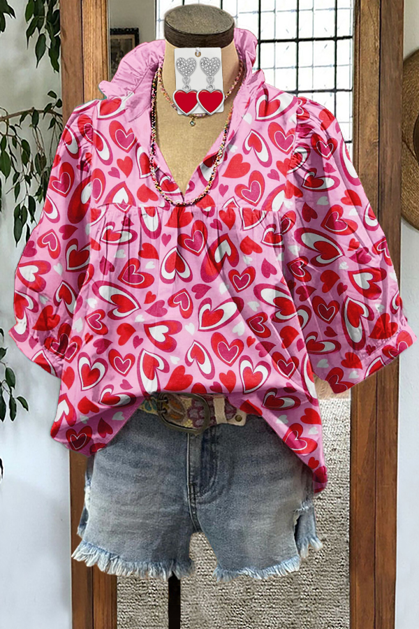 Stay on trend this season in our new classic, v neck top. We especially love the heart fabric and think this piece will be a new favorite in your closet!