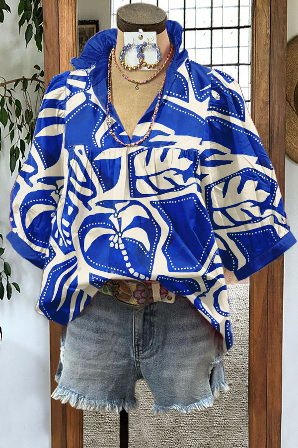 Stay on trend this season in our new classic, v neck top. We especially love the natural print fabric and think this piece will be a new favorite in your closet!