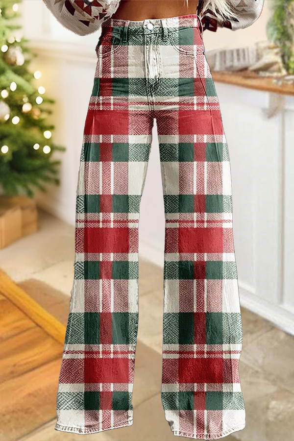 Christmas Red Green Plaid Wide Leg Pants