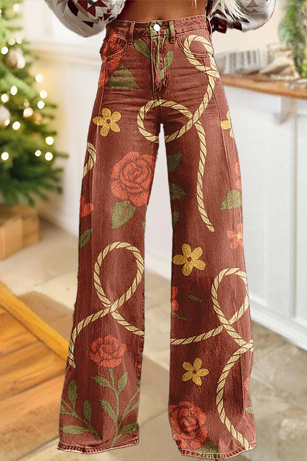 Floral Rope Wide Leg Pants