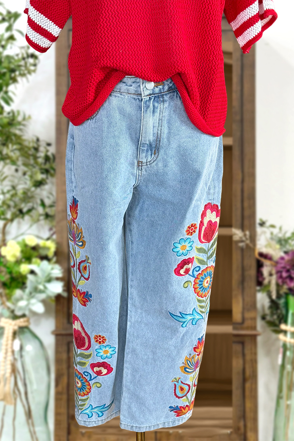 Spring Floral High Waisted Wide Leg Pants