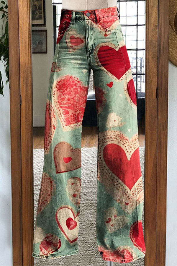 Vintage Print Casual Wide Leg Pants