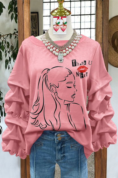 Pink Print Pleated Sweatshirt