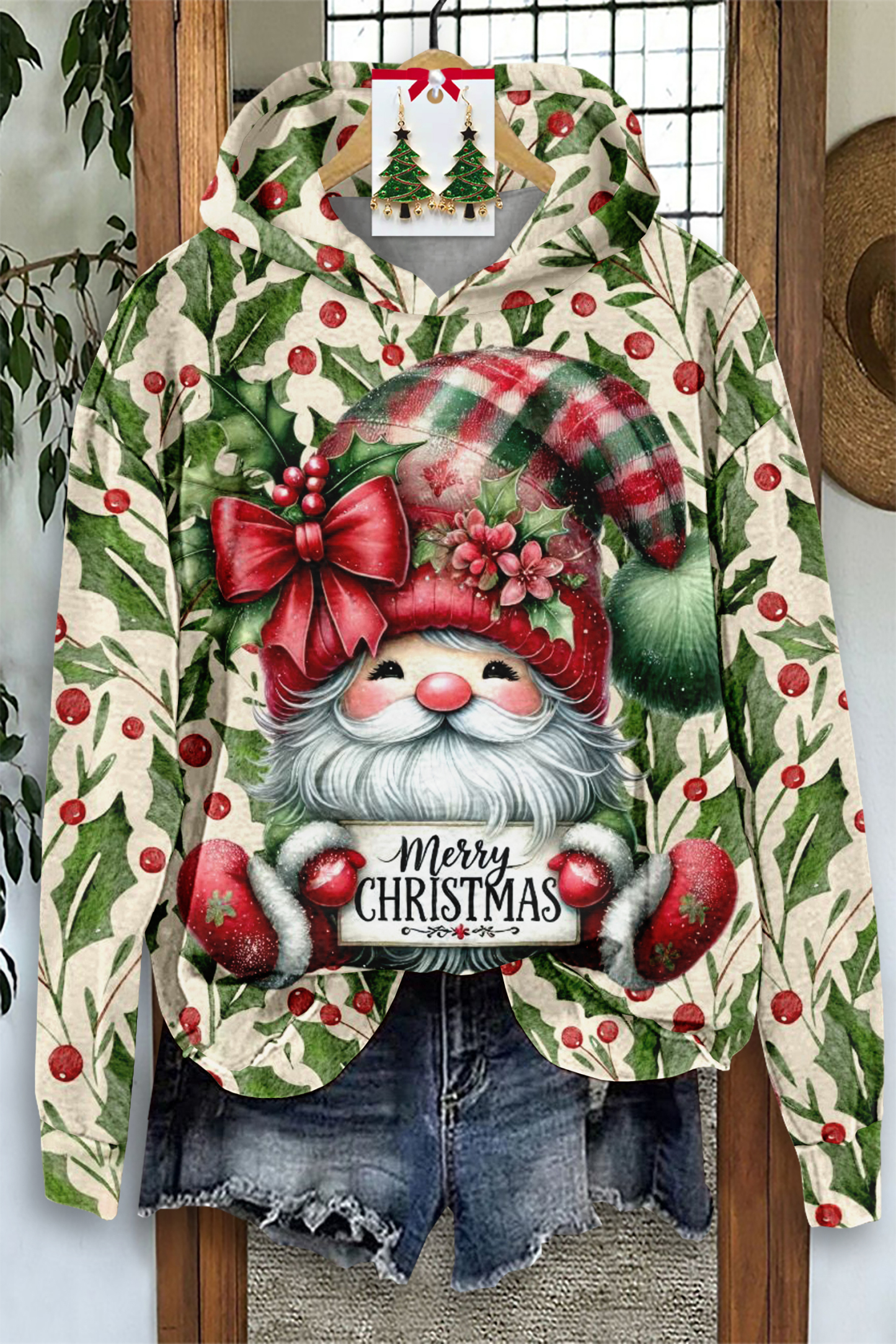- Neckline: hood