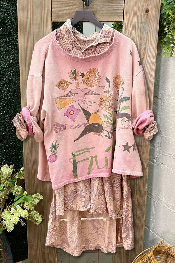 Retro Flower Bird Print Sweatshirt