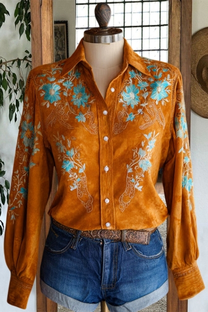 Halloween Retro Pumpkin Floral Shirt