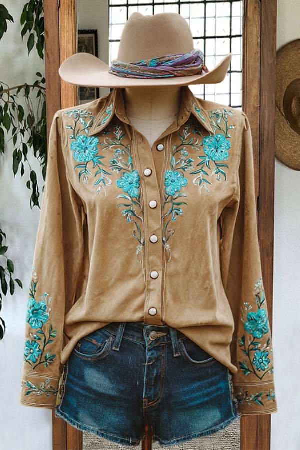Vintage Earth Tone Turquoise Floral Shirt