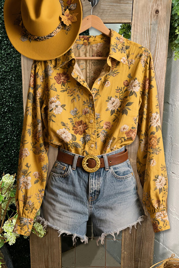 Vintage Autumn Floral Print Shirt