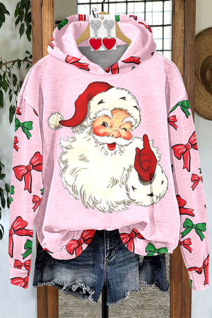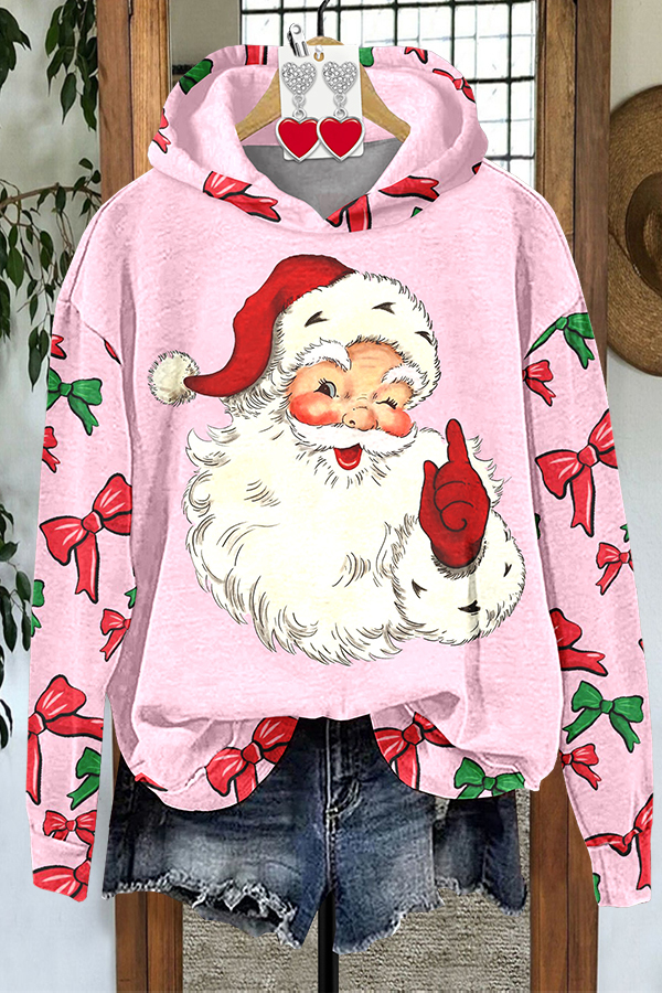Bow Santa Print Hoodie