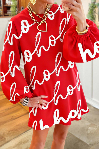 Christmas Ho Ho Ho Puff Sleeve Dress