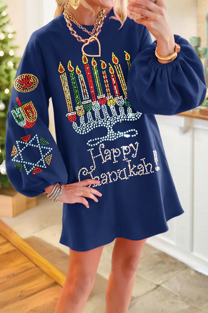 Happy Hanukkah Puff Sleeve Sweatshirt Dress