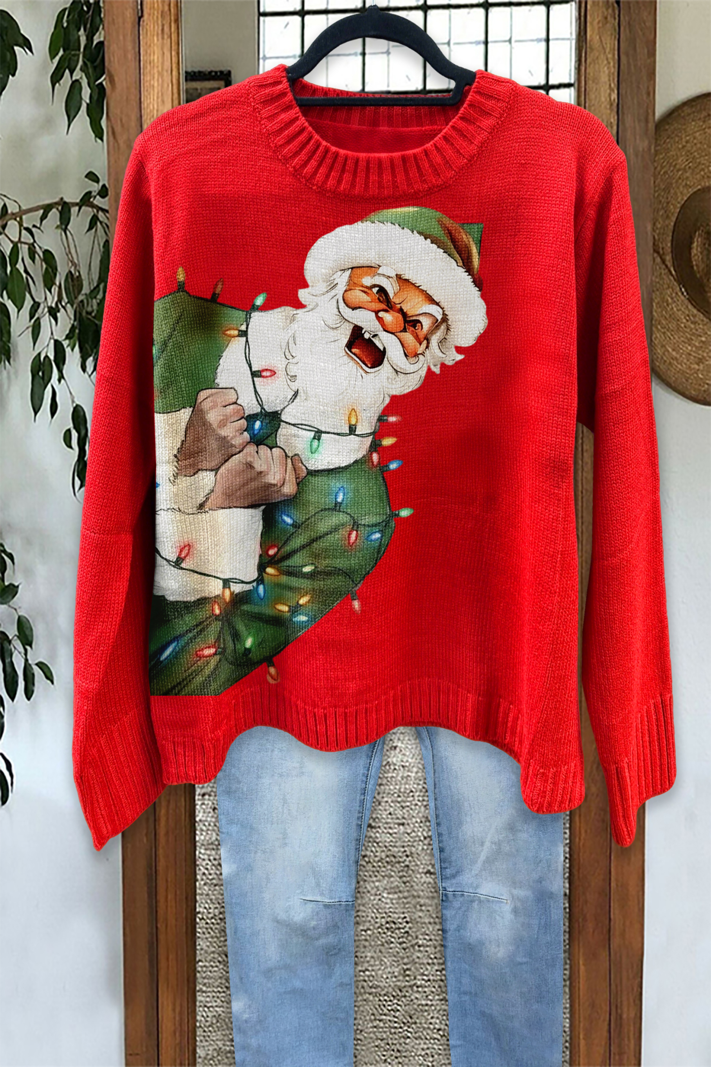 Ugly Christmas Santa Lights Sweater