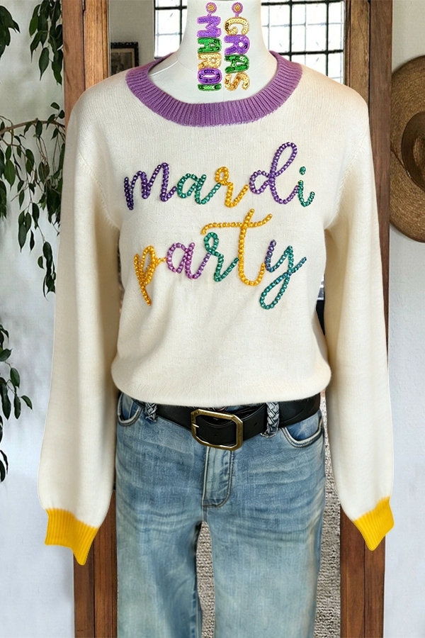 Stay on trend this season in our new casual, round neck sweater. We especially love the graphic print fabric and think this piece will be a new favorite in your closet!