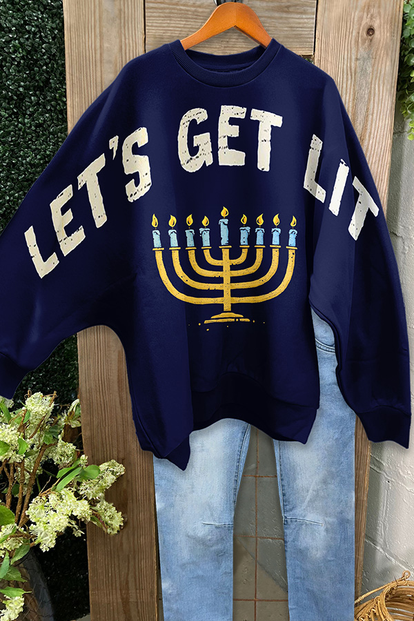 Let's Get Lit Hanukkah Batwing Sleeve Sweatshirt