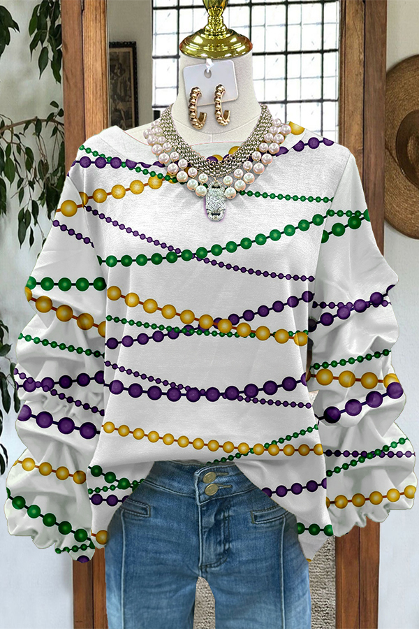 Mardi Gras Chain Pleated Sleeve Sweatshirt