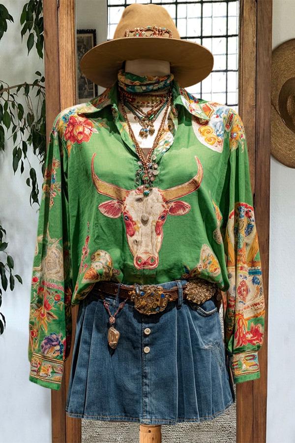 Vintage Western Longhorn Floral Shirt