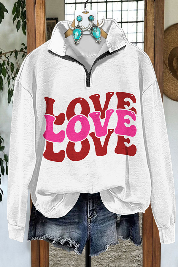 Valentine's Day Love Print Zipper Sweatshirt
