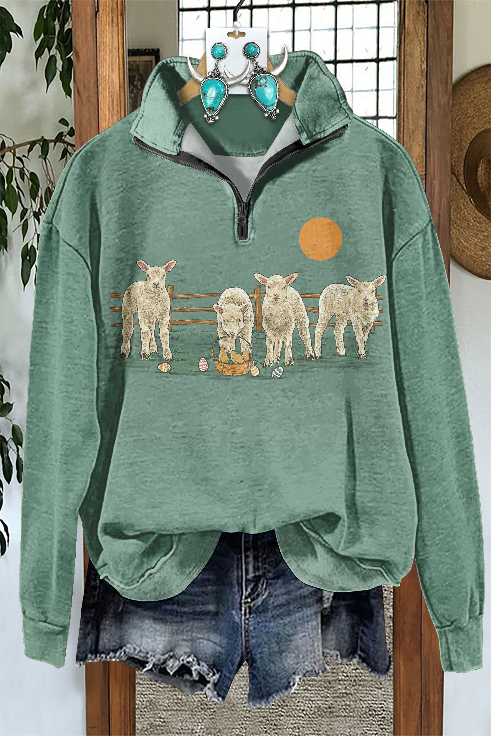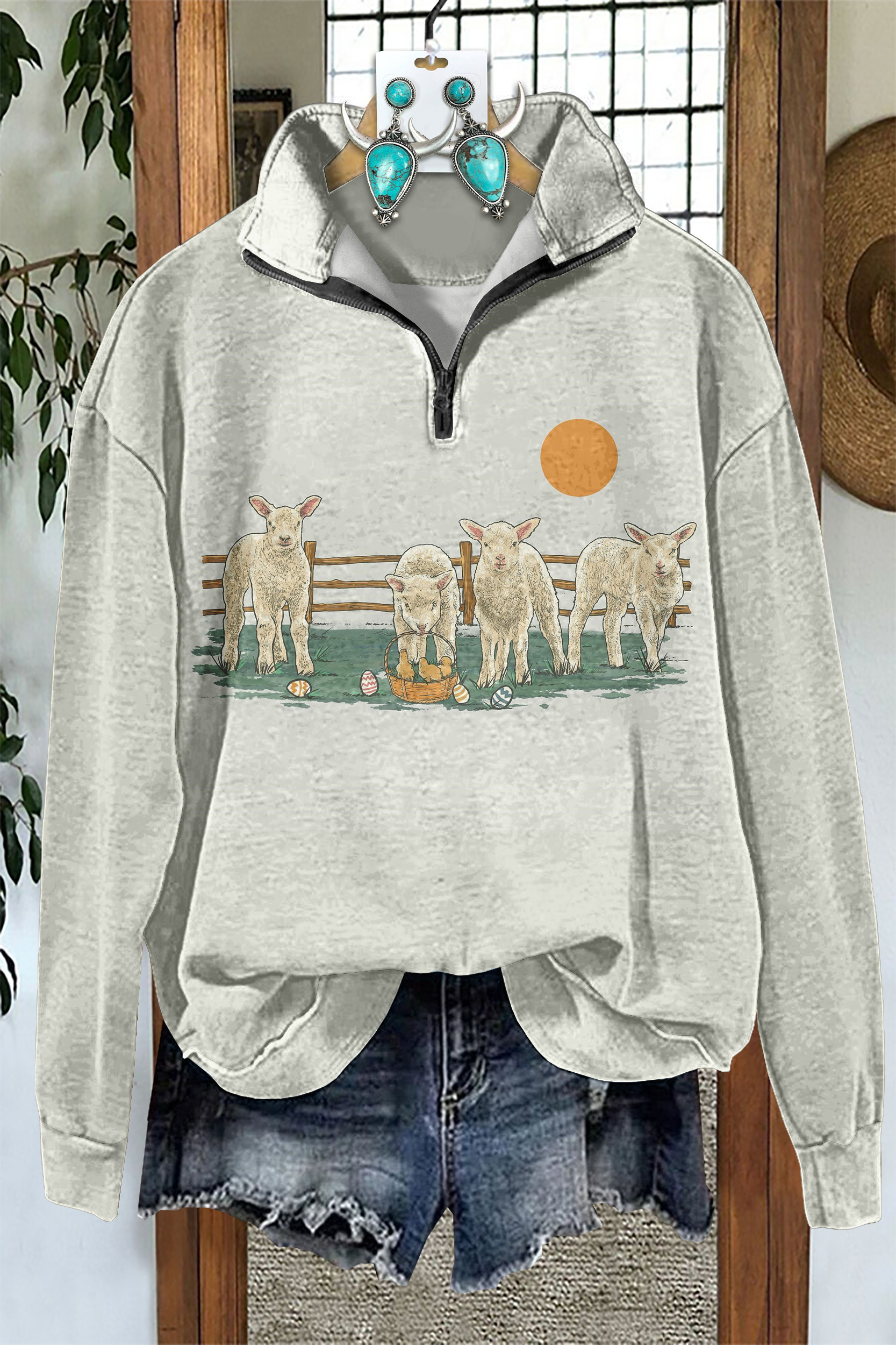 Western Easter Egg Sheep Zip Sweatshirt