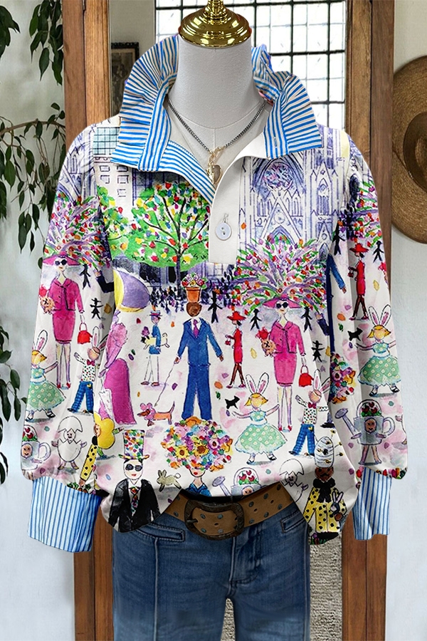 Galison Easter Parade Striped Ruffled Blouse