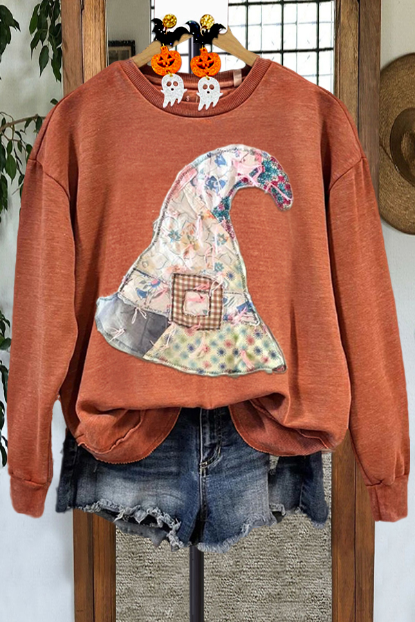 Contrast Color Halloween Hat Print Sweatshirt
