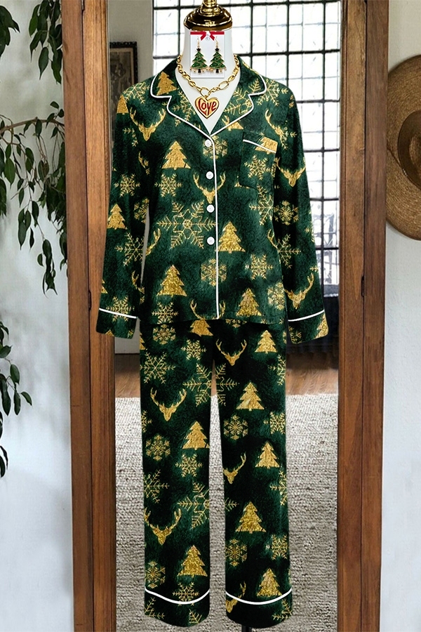 Christmas Elk Snowflake Velvet Pajama Set