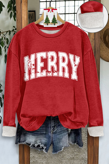 Merry Christmas Print Thick Fleece Sweatshirt