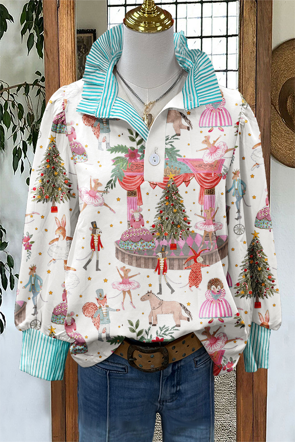 Sweet Christmas Nutcracker Print Puff Sleeve Blouse
