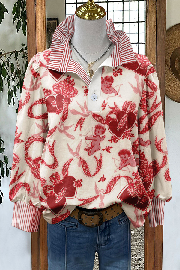 Sweet Valentine's Day Print Puff Sleeve Blouse