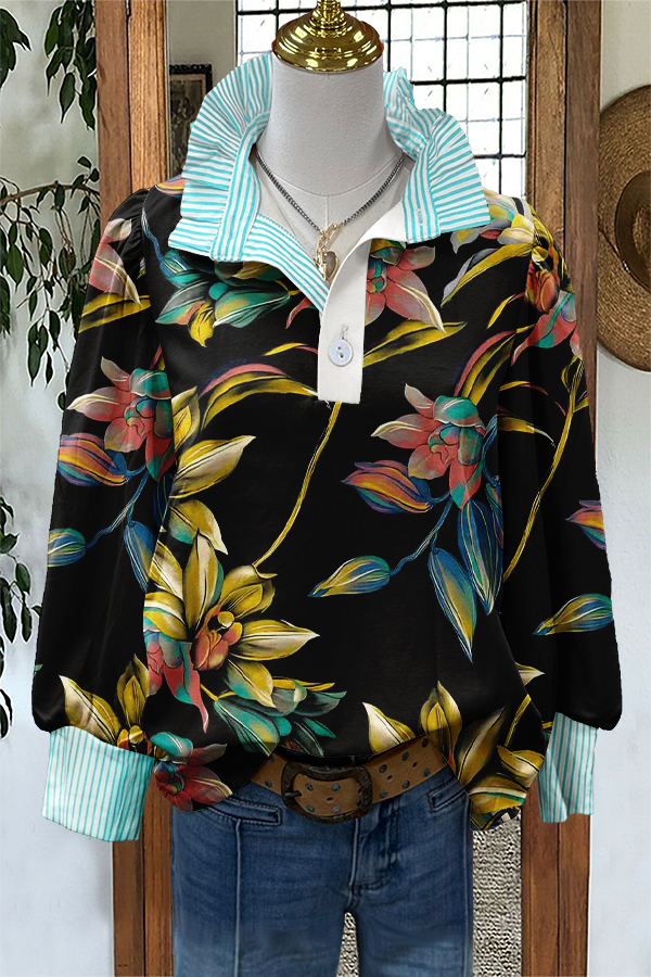 Stay on trend this season in our new classic, mandarin collar blouse. We especially love the graphic print fabric and think this piece will be a new favorite in your closet!