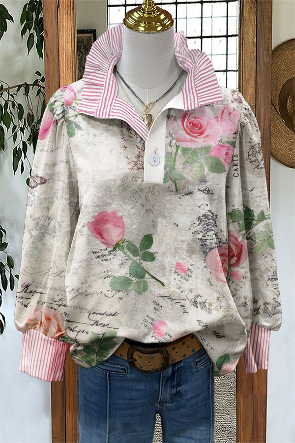 Cute Valentine's Day Print Puff Sleeve Blouse