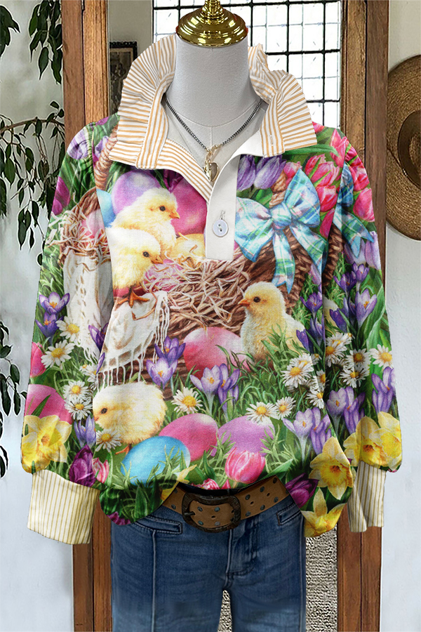 Sweet Easter Egg Print Puff Sleeve Blouse