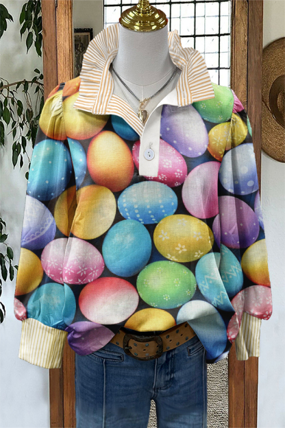 Cute Easter Egg Print Puff Sleeve Blouse
