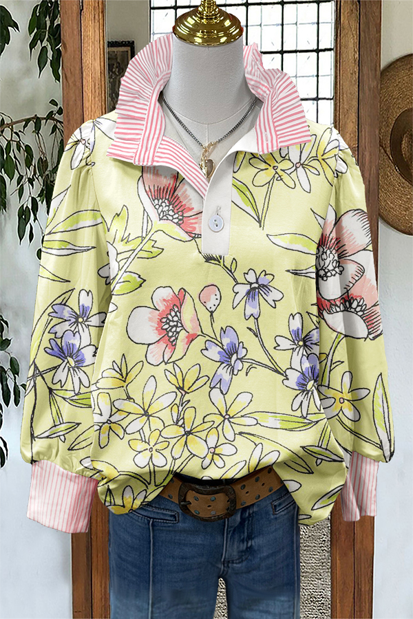 Cute Floral Print Puff Sleeve Blouse