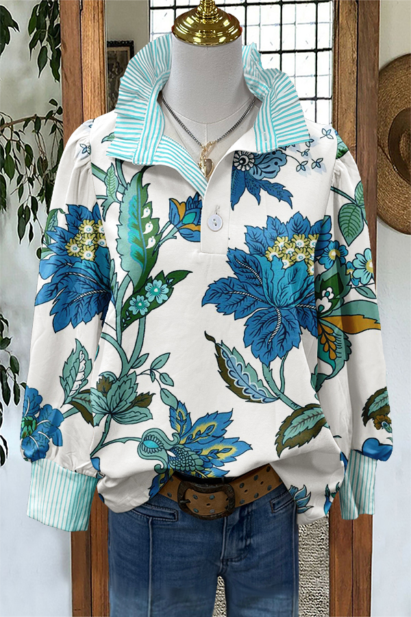 Stay on trend this season in our new classic, mandarin collar blouse. We especially love the graphic print fabric and think this piece will be a new favorite in your closet!
