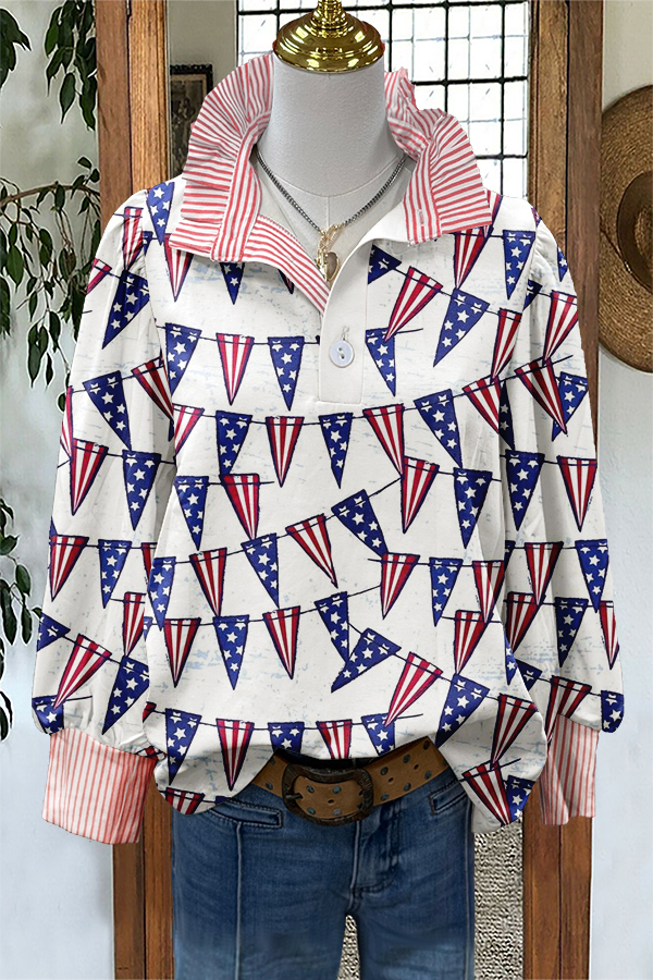 Chic Stars Patriotic Day Print Puff Sleeve Blouse