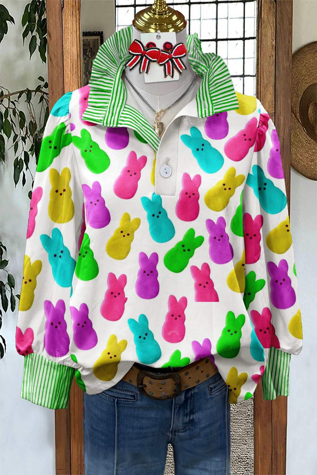 Vintage Easter Bunny Print Puff Sleeve Blouse