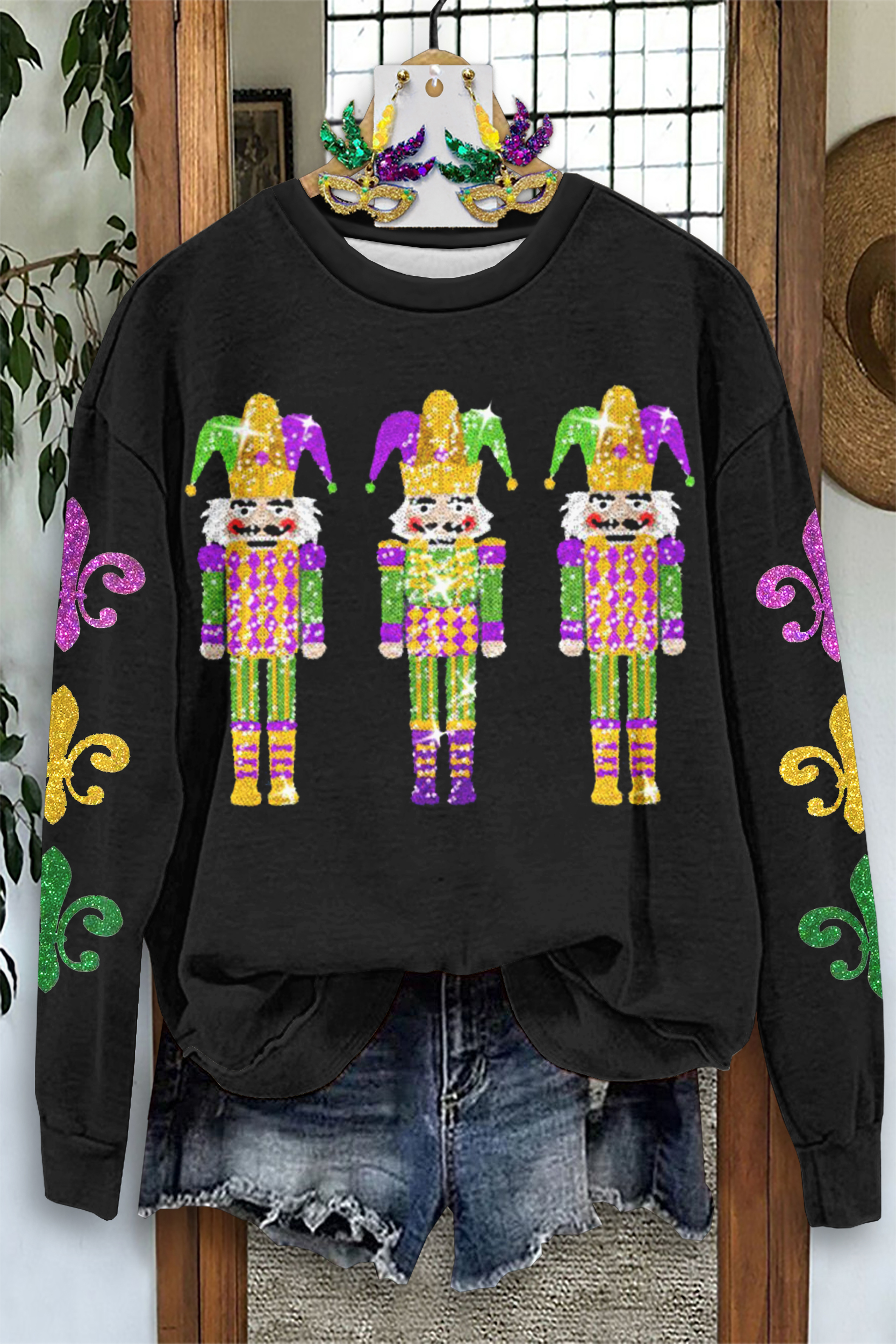 Classic Mardi Gras Nutcracker Print Sweatshirt